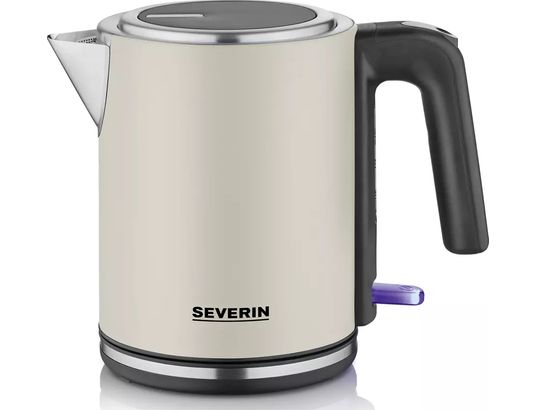 Severin Bouilloire compacte électrique 1 L, Filtre anticalcaire amovible, Ouverture XXL, Ébullition rapide Base à 360°, Niveau d’Eau Visible, inox, Beige, 2400 W, WK 9577