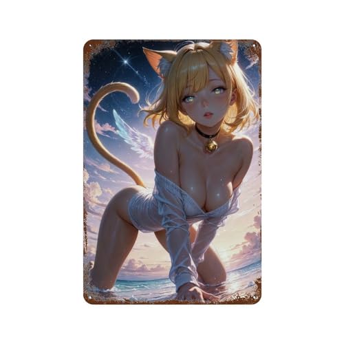 sinyumoney Plaque décorative vintage en métal « Fille Chat Sexy », accessoire idéal pour jardin, ferme, salon, extérieur, clubs, 30 x 20 cm