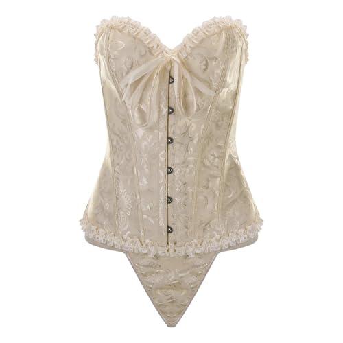 Nuqqichongtian Corset pour femme - Corset sexy en brocart avec lacets - Corset galbant - Tenue gainante gothique rétro - Bustiers - Grande taille - Blanc - L