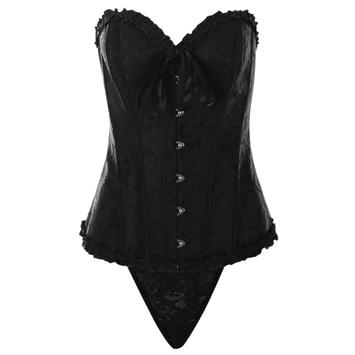 Nuqqichongtian Corset pour femme - Corset sexy en brocart avec lacets - Corset galbant - Tenue gainante gothique rétro - Bustiers - Grande taille - Noir - L