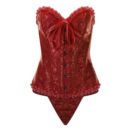 WEITING Femmes Corsets et Bustiers Sexy Floral Corset Lingerie Tops Brocade Vintage Overbust Lace Up Corset Plus Size Victorian Corsets-Noir Rouge,6XL