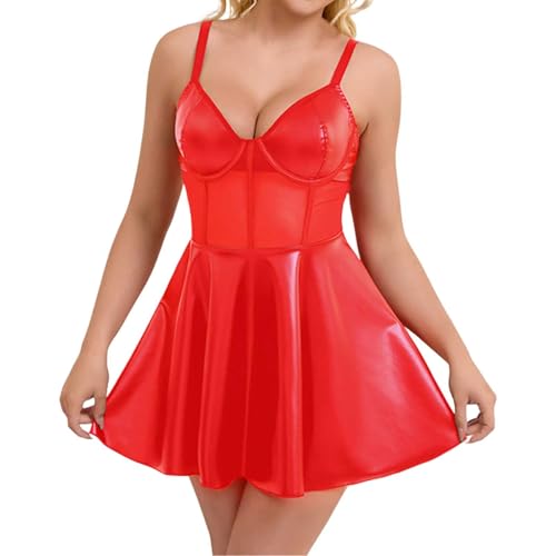 LKRSEEF Luxe Tenue Femme Pute Sexy Érotique Catsui Corset Cosplay Ouverte Lingerie SM Coquine Hot String Dominatrice Harnais Latex Cuir Robe Mini Jupe