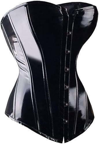 Corset Bustier pour Femmes - Sexy Black PVC Overbust Corset Steampunk Lingerie Top - Goth Rock Corset Sexy Leather Waist Trainer, Style A, XXL