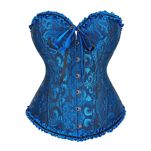 Nuqqichongtian Costume de carnaval pour femme - Corset sexy en brocart avec lacets - Corset gainant - Style gothique rétro - Corset bustiers - Grande taille - Bleu - 6XL