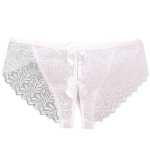 souvetements Femmes Sexy érotique, sous-vêtements Sexy en Dentelle Short ajouré à Entrejambe Ouvert désir et nœud machinant (White XL)