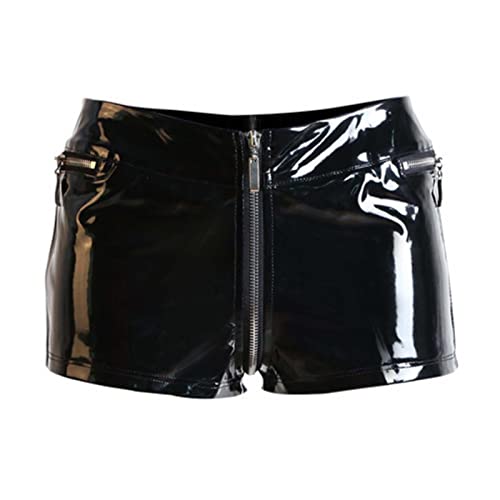 Générique Noir,XL, Aux Femmes Sexy Cuir PU Loisirs Fermeture Éclair sans Entrejambe Taille Haute Serré Short en Cuir DS Scène Montrer Vêtements Noir