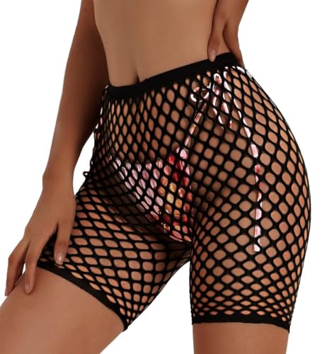 AJMDGW Short de Motard Sexy en résille for Femmes, Noir, Taille Haute, for Maillots de Bain, Bas de Bikini, Short de Protection(Black-Solid)