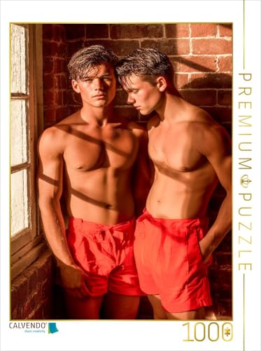 CALVENDO Puzzle Deux Jeunes Hommes Sexy en Short Rouge étroitement rapprochés | 1000 pièces Taille de la Pose 48 x 64 cm Puzzle Photo pour des Heures heureuses