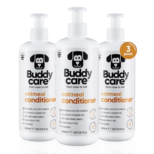 Buddycare Après-shampoing à l'avoine pour chien – 500 ml x 3 – Après-shampoing parfumé au beurre d'avoine avec aloe vera et provitamine B6