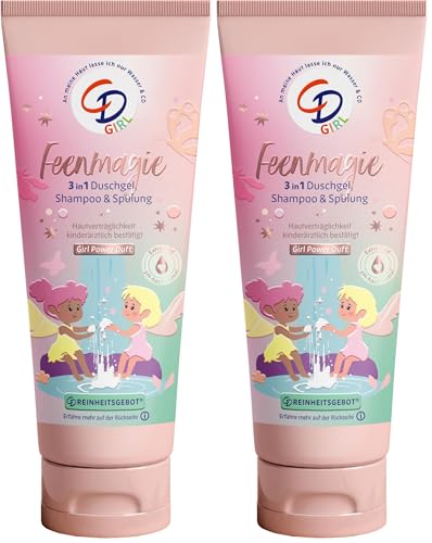 CD Girl Gel douche 3 en 1 | Gel douche, shampooing et après-shampoing pour fille | Avec aloe vera bio et extrait de pêche bio | Parfum Girl-Power | Pour peaux sensibles | Sans microplastique