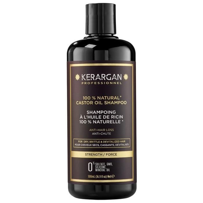 Kerargan - Shampoing Anti-Chute à l'Huile de Ricin - Fortifie & Favorise la Croissance - Cheveux Secs et Cassants - Enrichi en Kératine, Huile d'Argan, Aloe Vera - Sans sulfate, OGM, silicone - 500ml
