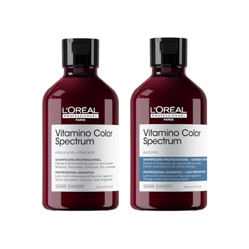 L'OREAL PROFESSIONNEL - Routine Shampoing Cheveux Châtains + Shampoing Neutralisant Bleu - Anti-Reflets Oranges - Protège La Coloration Jusqu'À 100 Jours - Série Expert Vitamino Color Spectrum
