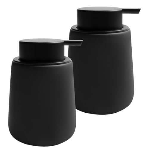 Distributeur de savon liquide de comptoir en céramique pour shampoing, salle de bain, cuisine, décoration vintage (brun-noir)