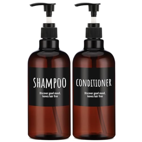 Flacon Distributeur de shampoing 500 ML, Segbeauty 2 pcs Marron Bouteilles de shampoing pour la Douche avec étiquettes, Bouteille de Lotion de Savon en Plastique à Pompe Rechargeable Vide de 16,9 oz