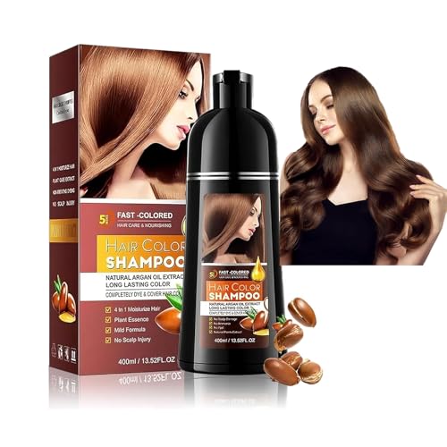 Shampoing Colorant Chatain Foncé, 500ml Shampooing Teinture Cheveux Blancs, Shampooing Teinture Instantanée pour Cheveux,Coloration Chatain Foncé,Hair Dye pour Hommes Femmes (Marron Foncé)
