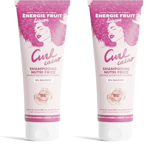 ENERGIE FRUIT | Shampoing sans Sulfate | Beurre & poudre de cacao | Cheveux Frisés & Crépus | Vegan, Marron, 250.00 ml (Lot de 2)