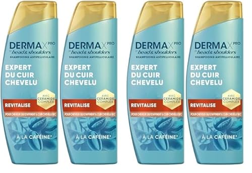 DermaXPro by Head & Shoulders Revitalise Shampoing Antipelliculaire 2x250ml à la Caféine et Complexe de Céramides, Hydrate le Cuir Chevelu Sec et les Cheveux Fins, Aide à Renforcer la Barrière Cutanée