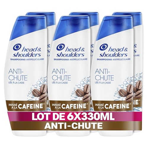 Head & Shoulders Anti-chute Shampoing Antipelliculaire 6x330ml Usage Quotidien - À la Caféine - Jusqu'à 100% Des Pellicules Éliminées, Cliniquement Prouvé - Tous Types de Cheveux et de Cuir Chevelu