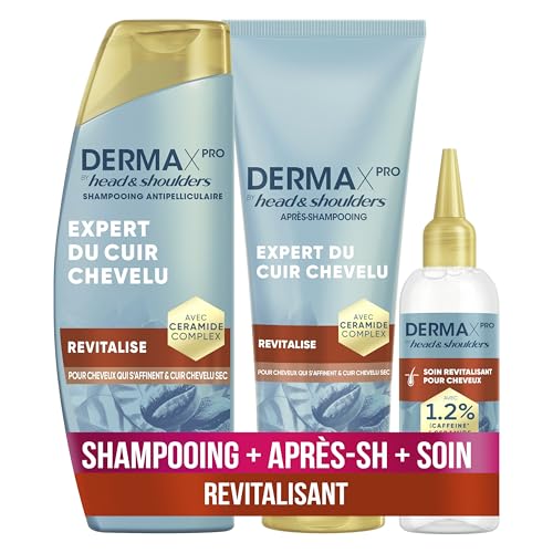 DermaXPro by Head & Shoulders Routine Revitalisante Avec Shampoing 250ml, Après-Shampoing 220ml Et Soin Revitalisant Sérum Sans Rinçage 145ml à la Caféine et Complexe de Céramides