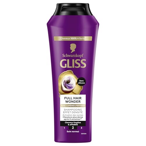 Schwarzkopf - Gliss - Shampoing soin - Full Hair Wonder - Effet densite - Sans silicone - Activation des racines - Cheveux fragiles et affaiblis - Cafeine et Peptides - Cheveux 100% plus forts - 250ml