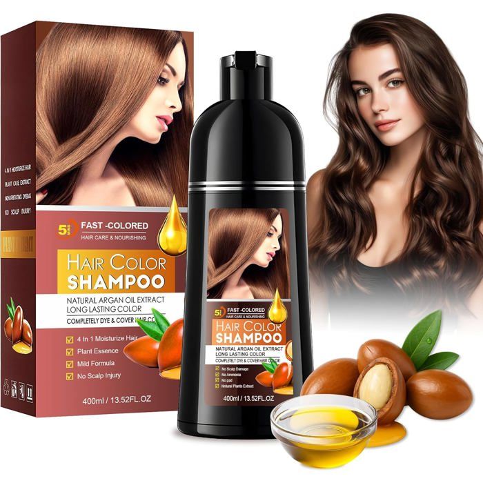 Shampoing Teinture Châtain 400 MlShampoing ColorantTeinture Capillaire Naturelle InstantanéeFacile À UtiliserLongue Duré[YS525]