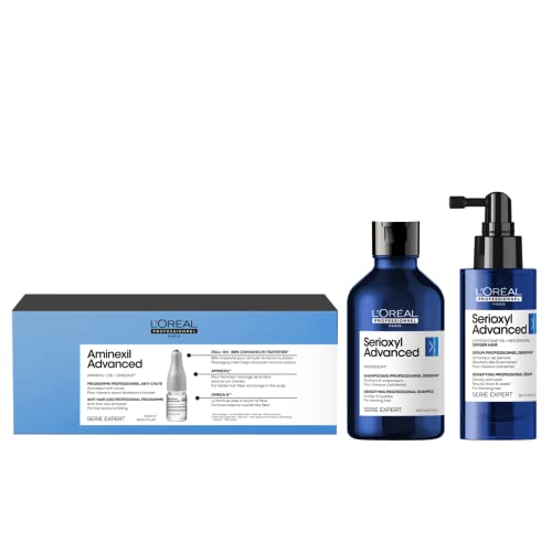 L’Oréal Professionnel – Pack Complet Anti-Chute et Fortification des Cheveux Affaiblis – +8000 cheveux dès 6 semaines* Sérum Fortifiant + Sérum Densifiant + Shampoing Corporisant, Serioxyl, Aminexil