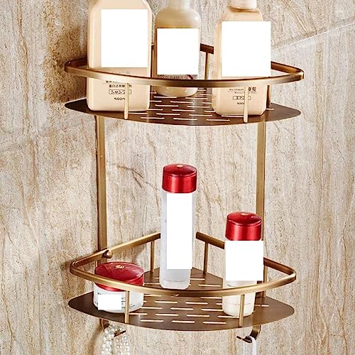 Étagère de Douche Murale Antique en cuivre for Salle de Bain, Douche, shampoing, Savon, cosmétiques, Panier de Rangement Double Couche (Couleur : Simple Niveau) (Couleur : si (Color : Double Tier)