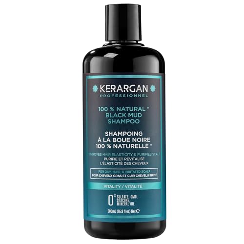 Kerargan - Shampoing Revitalisant à la Boue Noire de la Mer Morte pour Cheveux Gras et Cuir Chevelu Irrité - Purifie et Revitalise - Sans Sulfate, OGM, Silicone, Huile Minérale - 500ml