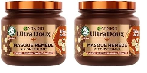 Garnier Ultra Doux - Masque Remède Reconstituant - Enrichi en Gelée Royale, Miel & Propolis - Pour Cheveux Fragiles & Cassants - Sans Parabène - Trésors de Miel - 340 ml (Lot de 2)