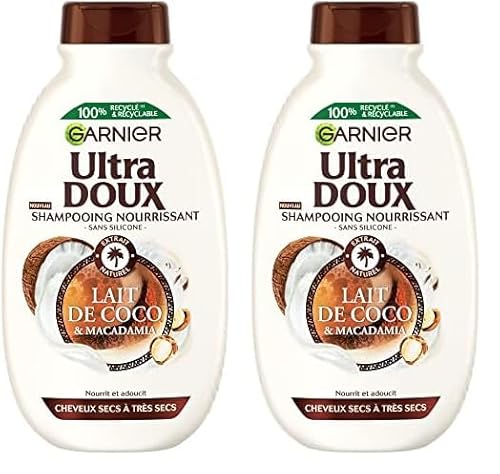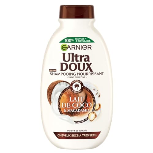 Garnier Ultra Doux - Shampooing Nourrissant - Enrichi en Lait de Coco & Macadamia - Pour Cheveux Normaux, Secs à Très Secs - Sans Silicone - 400 ml