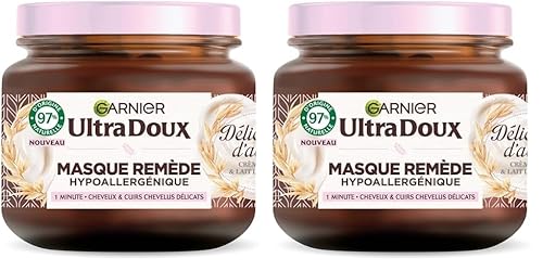 Garnier Ultra Doux - Masque Remède Hydratant & Hypoallergénique - Lait d'Avoine & Crème de Riz - Pour Cheveux & Cuirs Chevelus Délicats - Sans Parabène - 340 ml (Lot de 2)