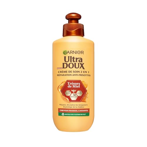 Garnier Ultra Doux Trésors de Miel pour Cheveux Fragiles & Cassants - Crème de Soin 2-en-1 Réparation Anti-Frisottis - Au Miel d'Acacia, de Manuka & de Lavande - 200ml - Homme & Femme