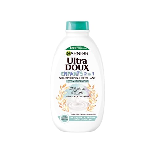 Garnier Ultra Doux - Délicatesse d'Avoine - Shampooing & Démêlant 2-en-1 pour Enfants - Cheveux & Cuir Chevelu Délicats - Au Lait d'Avoine Bio et à la Crème de Riz - Hypoallergénique - 400 ml