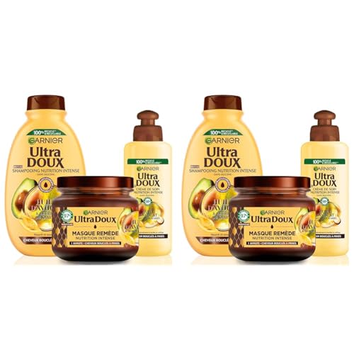 Garnier Ultra Doux - Routine pour Raviver les Boucles des Cheveux Secs, Bouclés à Crépus - À l'Huile d'Avocat et Beurre de Karité - Shampooing, Après-Shampooing et Masque - Homme & Femme