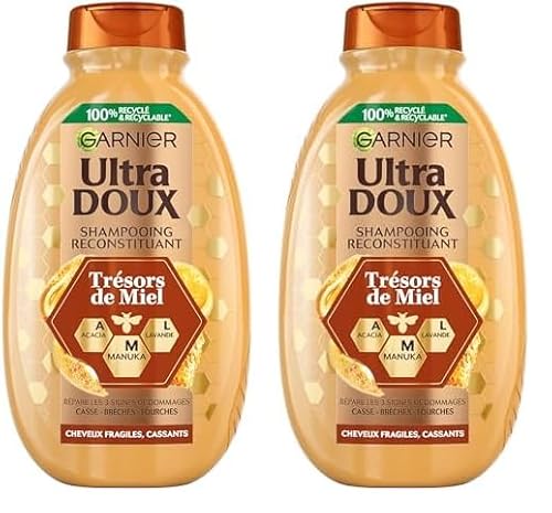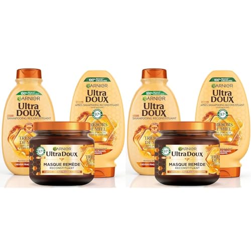 Garnier Ultra Doux Trésors de Miel - Routine Capillaire Reconstituante - Shampooing, Après-Shampooing & Masque - À la Cire d'Abeille & Au Miel d'Acacia - Pour Cheveux Fragiles & Cassants (Lot de 2)