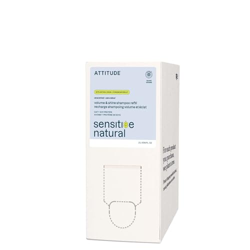 ATTITUDE Shampooing Volume & Brillance, cuir chevelu sec sensible, certifié EWG, avoine apaisante, cheveux fins, ingrédients d’origine naturelle, végan, recharge vrac, 2 L