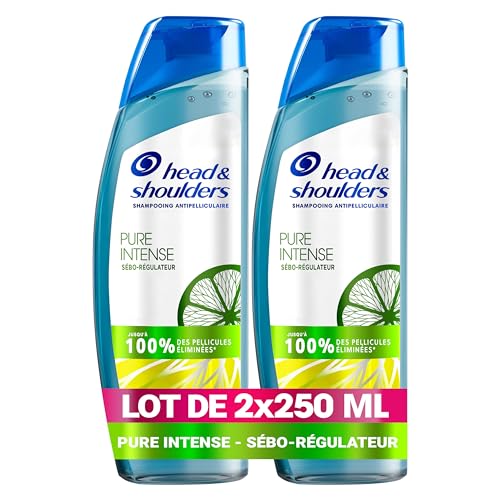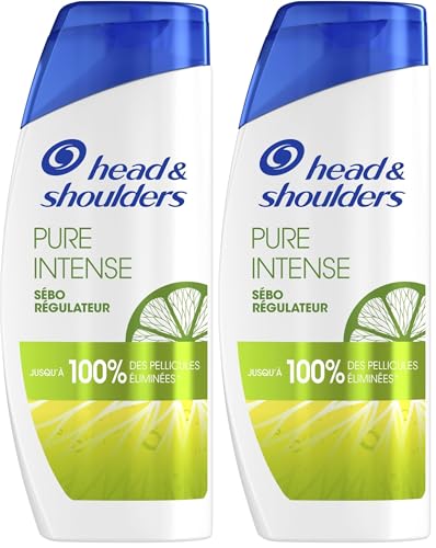 Head & Shoulders Pure Intense Sébo-Régulateur Shampooing Antipelliculaire 2x250 ml, Au Citron, Pour Cuir Chevelu Gras, Jusqu’à 100 % des pellicules éliminées