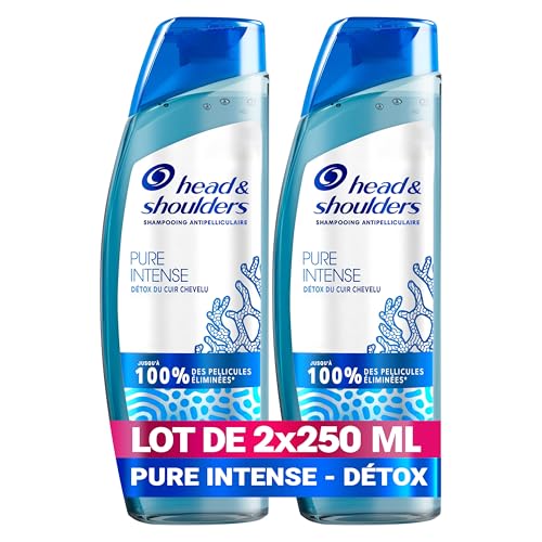 Head & Shoulders Pure Intense Détox Du Cuir Chevelu Shampooing Antipelliculaire 2x250 ml, Aux Minéraux Marins, Pour Cuir Chevelu Gras, Jusqu’à 100 % des pellicules éliminées