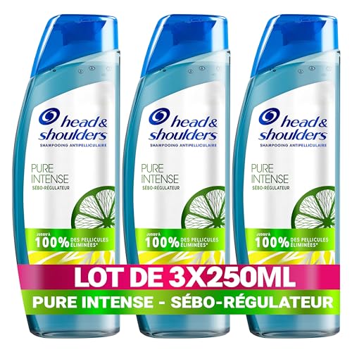 Head & Shoulders Pure Intense Sébo-Régulateur Shampooing Antipelliculaire 3x250 ml, Au Citron, Pour Cuir Chevelu Gras, Jusqu’à 100 % des pellicules éliminées