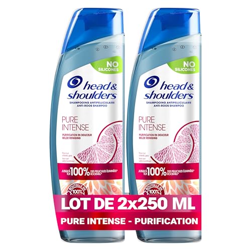 Head & Shoulders Pure Intense Purification En Douceur Shampooing Antipelliculaire 2x250 ml, Aux Agrumes, Pour Cuir Chevelu Gras, Jusqu’à 100 % des pellicules éliminées