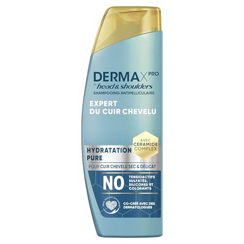 DermaXPro By Head & Shoulders Hydratation Pure Shampooing Antipelliculaire 250ml Pour Cuir Chevelu Sec Et Délicat. Sans Tensioactifs Sulfatés, Silicones Et Colorants. Avec Complexe De Céramides