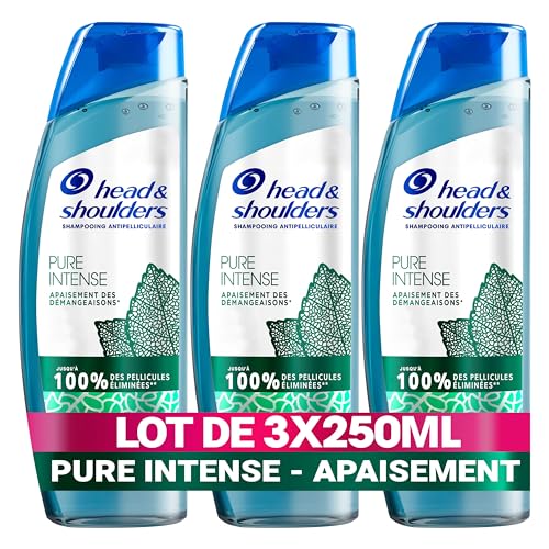 Head & Shoulders Pure Intense Apaisement Des Démangeaisons Shampooing Antipelliculaire, 3x250 ml, À la Menthe Poivrée, Pour Cuir Chevelu Gras Qui Démange, Jusqu’à 100% Des Pellicules Éliminées