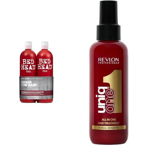 Bed Head by Tigi Urban Antidotes Resurrection, shampooing et après-shampooing, lot de 2 x 750 ml & Revlon Professional UniqOne, Masque en Spray Sans Rinçage (150 ml), Classique Rouge
