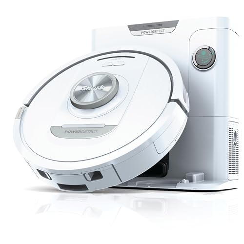 Shark PowerDetect Aspirateur Robot avec base autovideuse de 60 jours – Moquettes, sols durs et poils d’animaux – Navigation 3D LiDAR - Wi-Fi/App – Cartouche anti-odeurs, 2 brosses incluses – Blanc