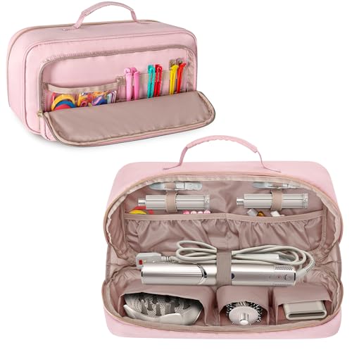 BUBM Sac de rangement de voyage compatible avec Dyson Airwrap Styler, Shark Flexstyle Air Styling & Drying System, étui de transport portable pour coiffeur Airwrap et accessoires, rose