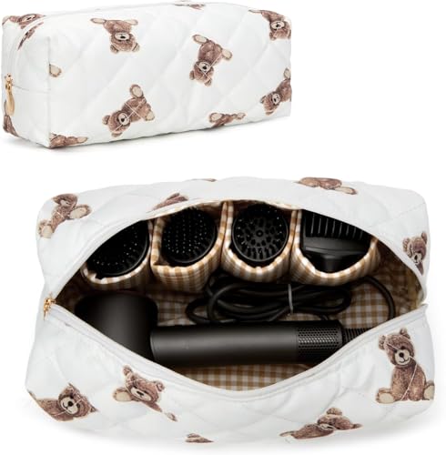 RuiDay Sac de Voyage pour Outils de Coiffure Compatible avec Dyson Airwrap, étui de Voyage Fleuri Mignon pour Outils de Coiffure Shark Flexstyle Organisateur (Imprimé Ours)