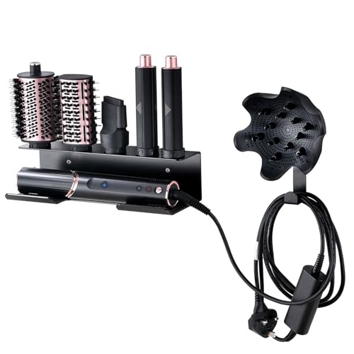 NromBox Support mural pour sèche-cheveux compatible avec Dyson Airwrap/Airstrait – Shark FlexstyleStyler | Support de rangement pour fer à friser pour la maison et la salle de bain (noir) | Fabriqué