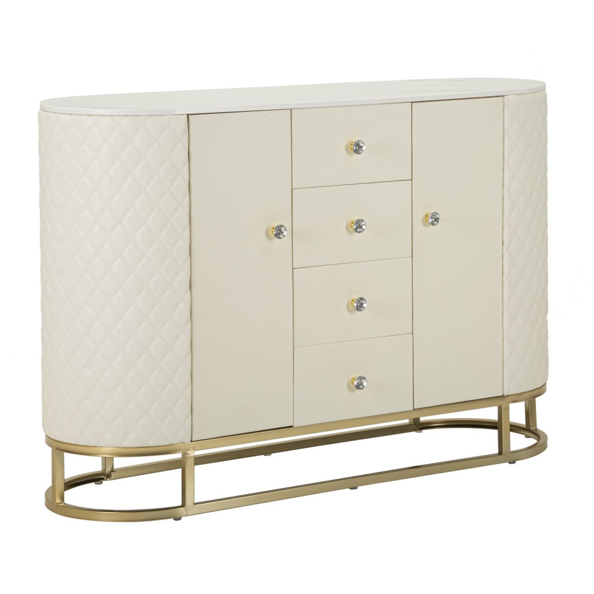 Buffet Design Effet Marbre "Sharon" 120cm Blanc & Or