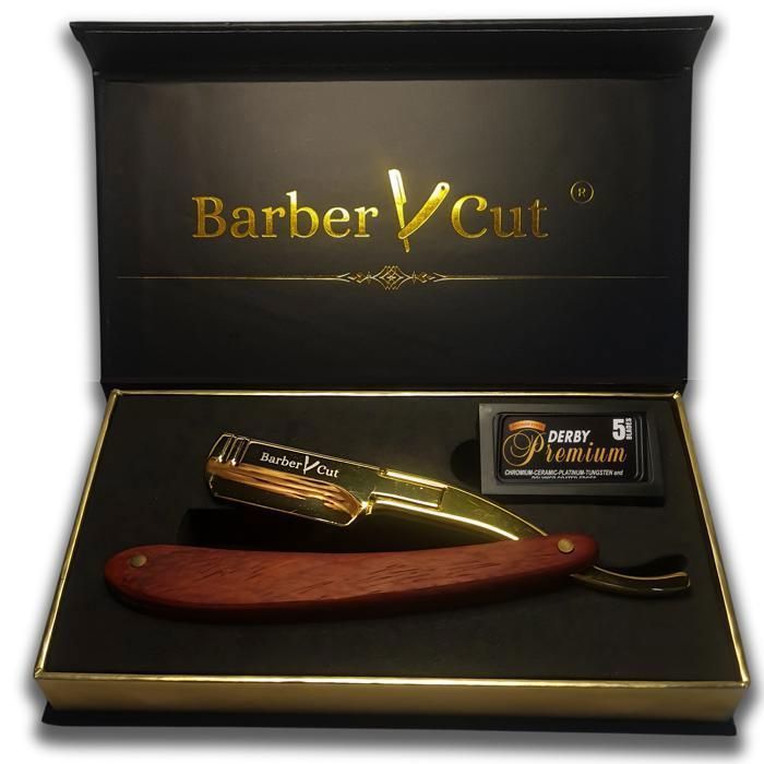 Rasoir homme Barber Cut coffret cadeau homme shavette coupe choux acier inoxydable Or/bois précieux kit barbe rasoir professionnel
