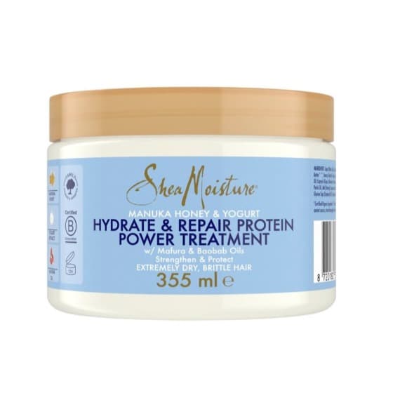 SheaMoisture Hydrate & Repair Protein-Power - Masque Capillaire au Miel de Manuka et au Yaourt - Pour Cheveux Secs et Abîmés - Sans Sulfate - Contient Huile de Baobab et Beurre de Karité - 1 x 355 ml